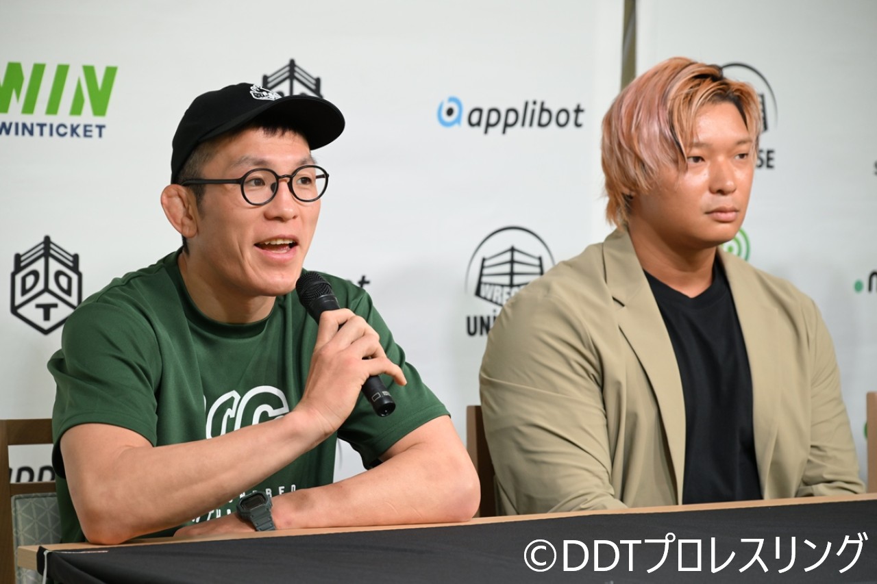 KANONは「全員意識してるんですけど、でもDDTのヘビー級ということで、納谷幸男選手、佐藤大地選手ともバチバチやりたいです」と話した。青木は「武知海青とはやりたいけど、やらせてもらえないですね」と苦笑したが、両選手がベスト4に進出すれば対戦する可能性がある。