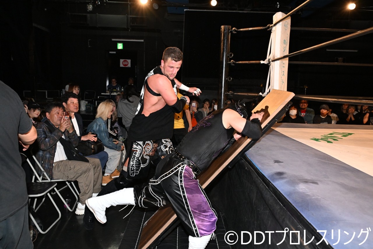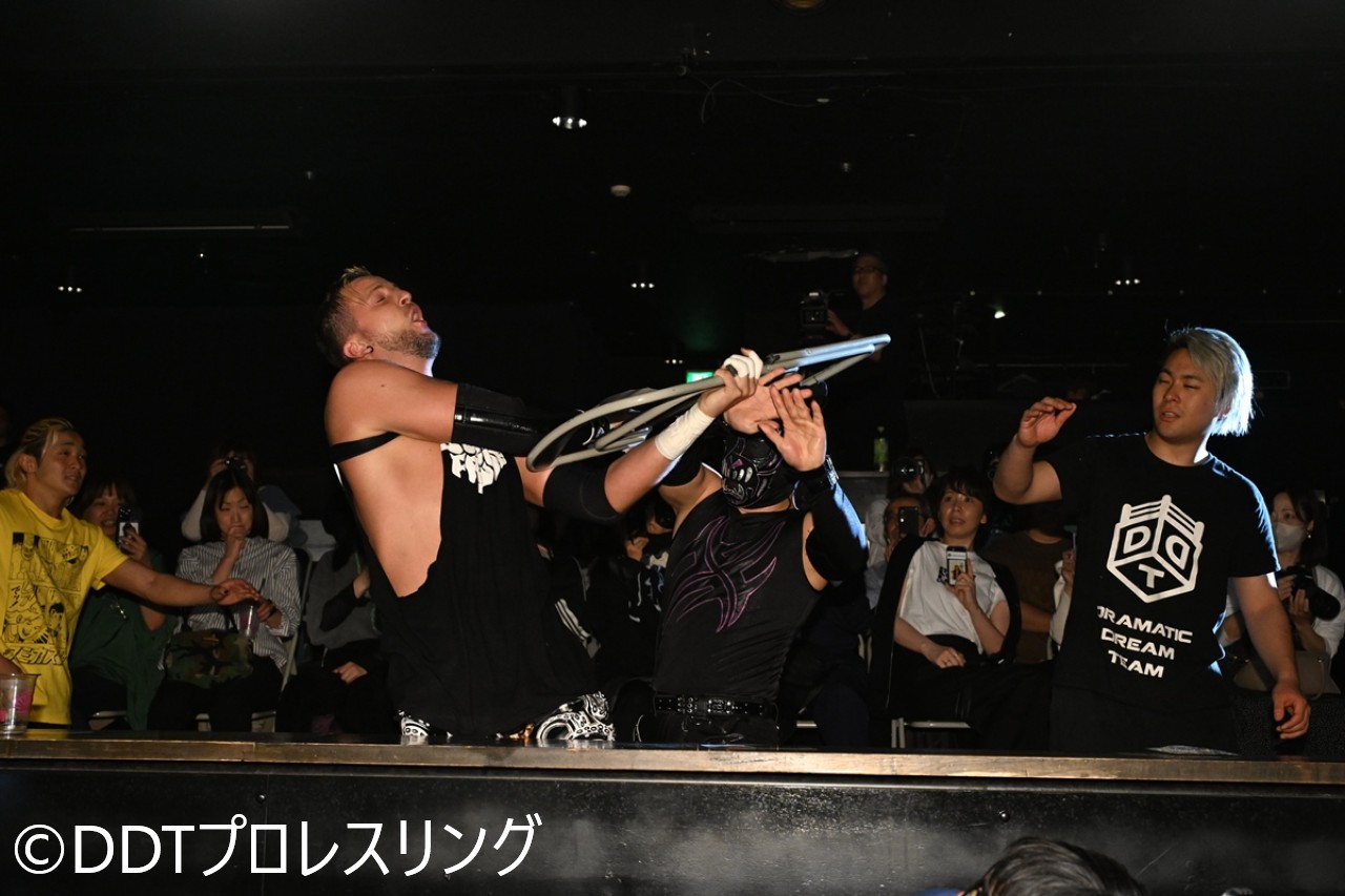 DDTプロレスが4月23日、東京・新宿FACEで『Road to KING OF DDT 2026』を開催した。クリス・ブルックスがダムネーションT.Aのイルシオンの成長を認めるも、5・1札幌サンプラザでのKO-Dタッグ王座戦でのベルト死守を誓った。