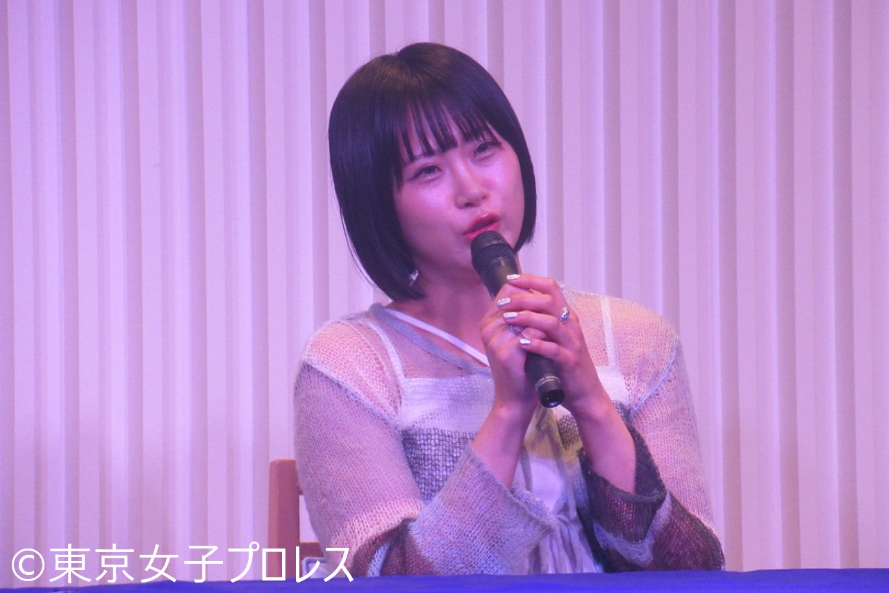 ようやく質疑応答の時間となり、「これを作ったことによって、タイトル戦に向けて前向きになれたか?」と問われると、辰巳は「常にこういうインスピレーションをはたらかせて、日々私達は過ごしているので。いい形で魂を込められたんじゃないかなと思ってます」と回答。インスピレーションの二人は髪型、メイクなどが酷似しているため、判別が困難だが、辰巳は「かく乱してくると思うんですけど、まあ倒せばいいだけなので。どっちがどっちとかあんまり関係ないのかな」と自信を見せていた。