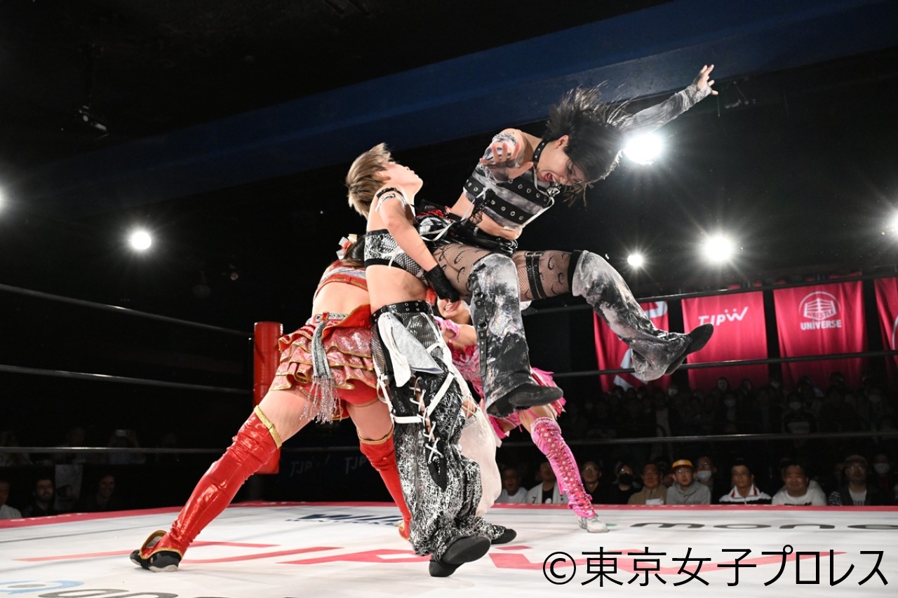 東京女子プロレスが4月24日、東京・新宿FACEで『TJPW SPRING TOUR 2026 ~NEXT DOOR~in SHINJUKU』を開催した。インターナショナル・プリンセス王者の鈴芽が5・4後楽園ホールで挑戦を受ける風城ハルから直接勝利を挙げ、王座防衛に弾みをつけた。