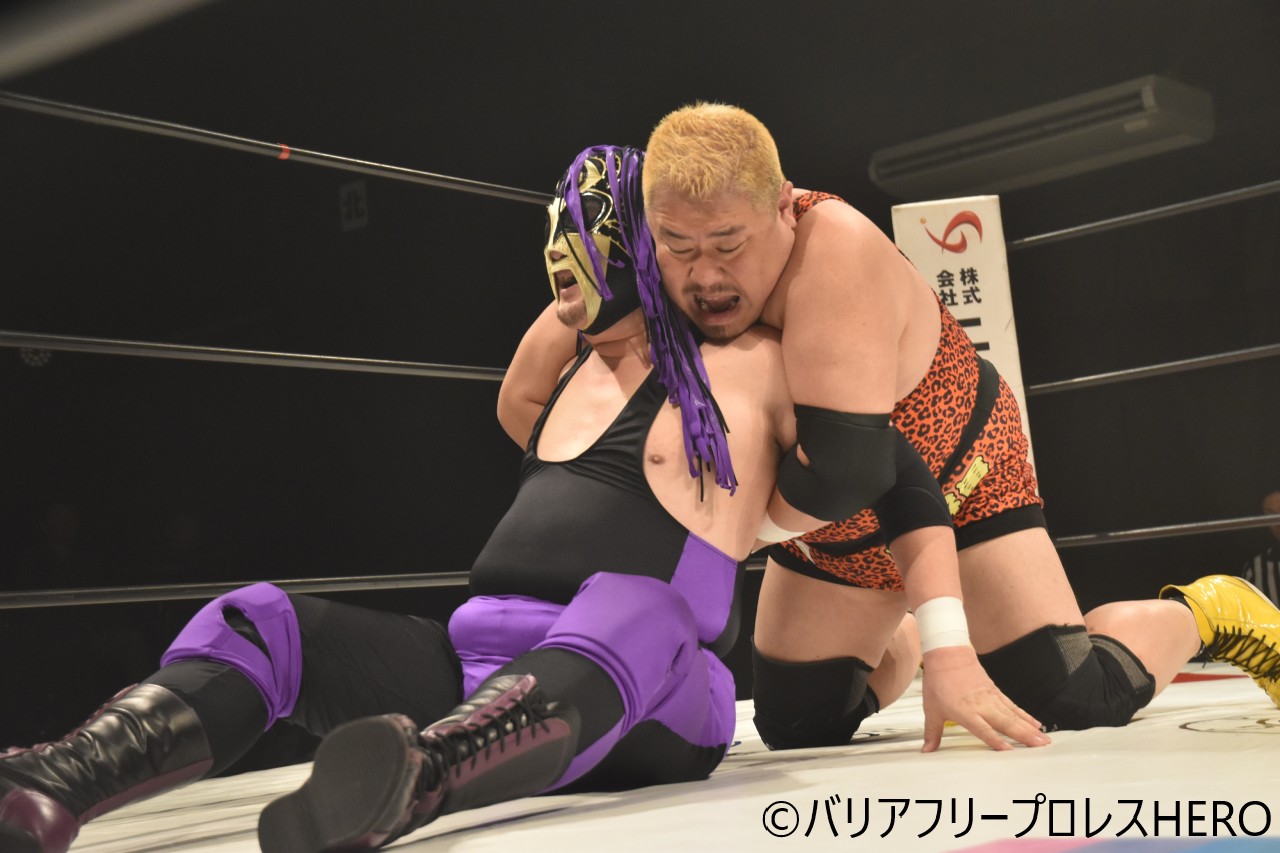 4月25日、東京都・新木場1stRINGにて、『障害があってもなくても楽しめるプロレス団体』をコンセプトとするバリアフリープロレスHEROが『HERO49』を開催。『初代WBCシングル王者決定トーナメント』2回戦及び準決勝が実施され、ワイルド・ベアー(HERO)とガッツ石島(TTT)が決勝戦(8・29新木場)進出を決めた。