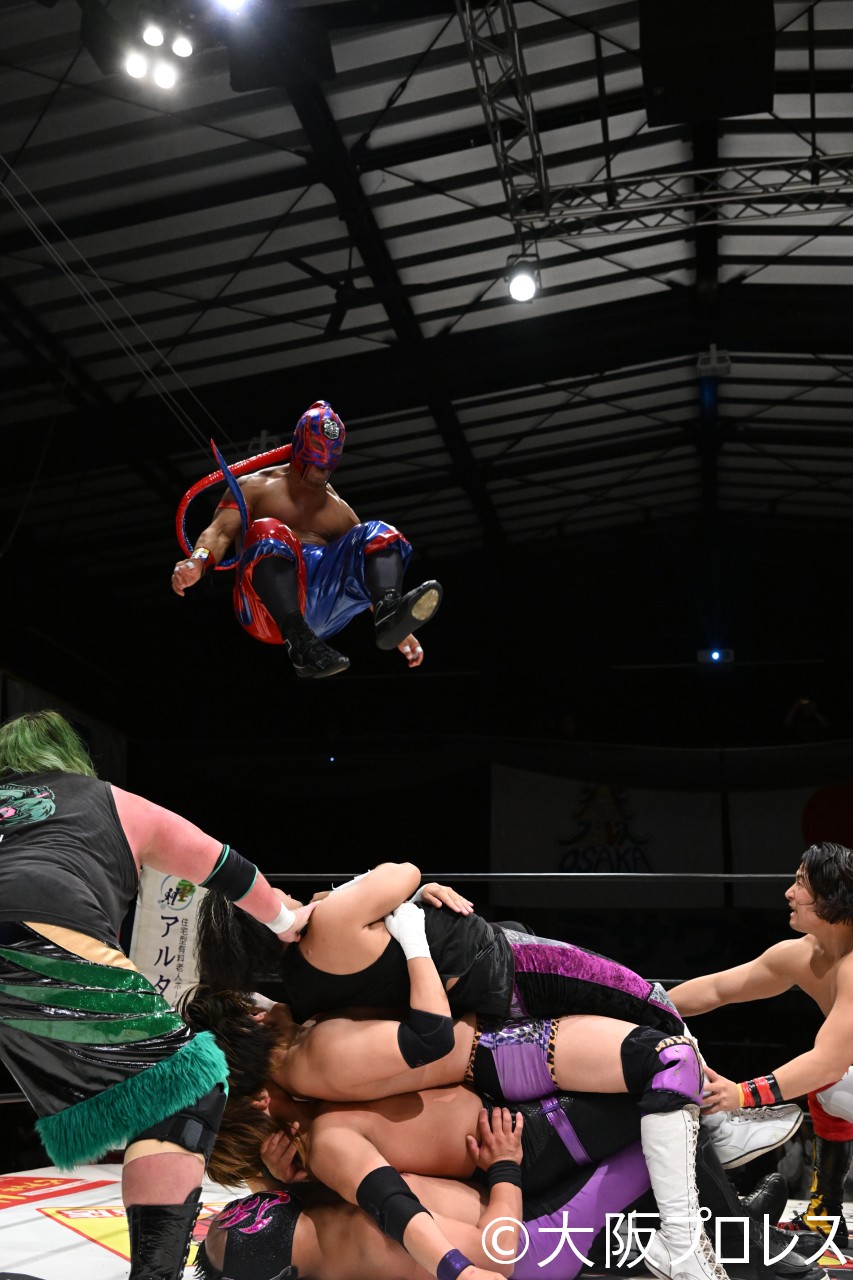 【試合詳細】4・25 大阪プロレス176BOX大会 【大阪ライトヘビー級】アルティメット・スパイダーJr vs SUZAKU 【大阪プロレスタッグ】タイガースマスク&佐野蒼嵐 vs 松房龍哉&水野翔 くいしんぼう仮面&大坂丈一郎&えべっさん vs CIMA&スペル・デルフィン&ビリーケン・キッド