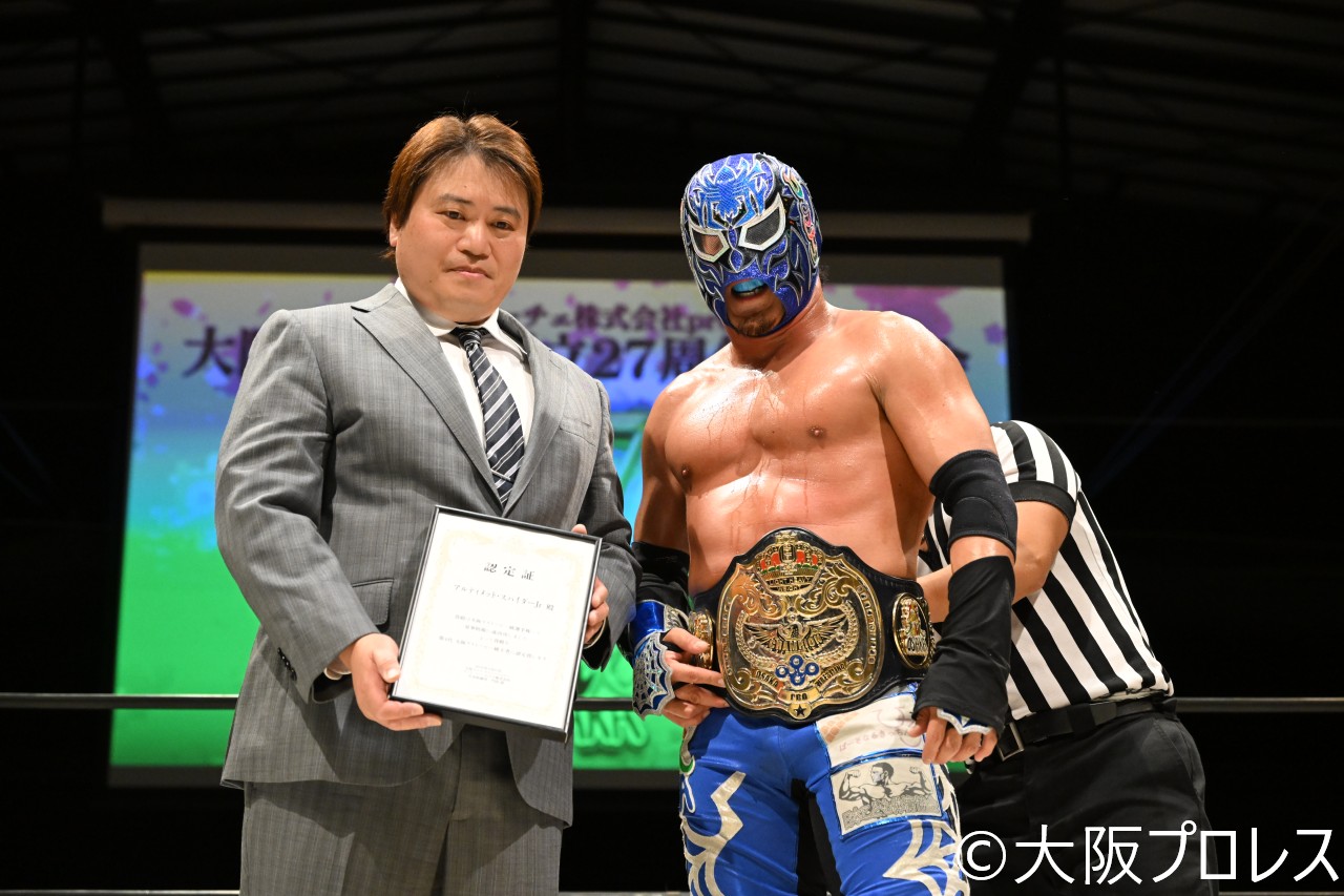 大阪プロレス27周年記念大会が2日間に渡って開催!スパイダーJrが大阪ライトヘビー級、タイガースマスク&佐野が大阪プロレスタッグをそれぞれ2度目の防衛に成功!復帰戦となったCIMAが大CIMAコールの中華々しく勝利を飾る!