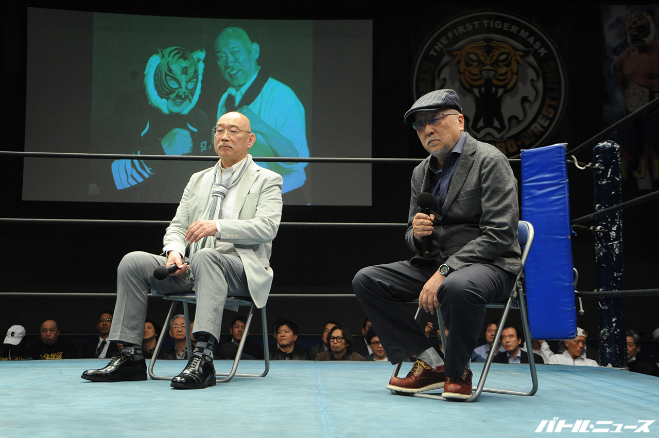 1981年4月23日蔵前国技館にて、ダイナマイト・キッドを相手にデビューした初代タイガーマスク。本イベントはその初代タイガーマスク45周年と、佐山サトルプロレスデビュー50周年を祝うイベントとして、様々なゲストが来場した。