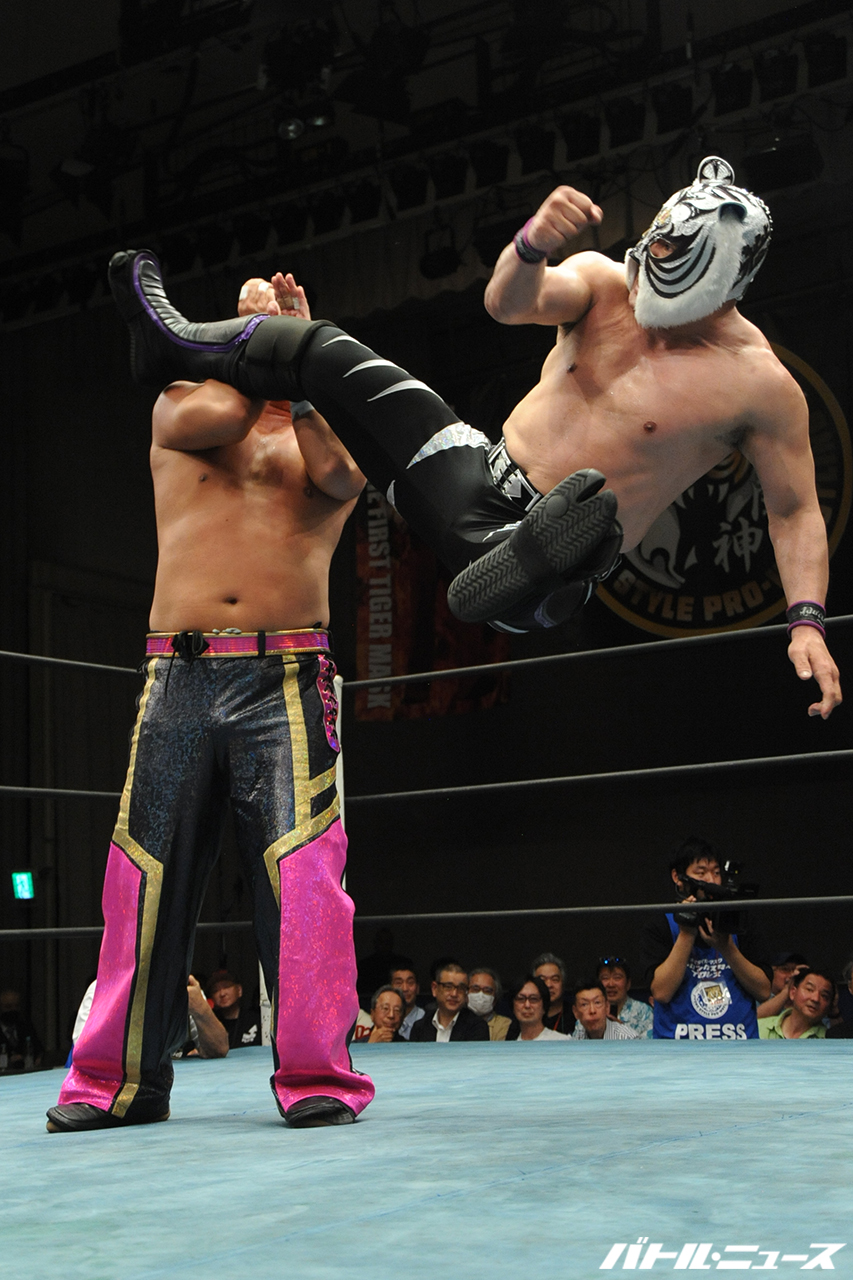 試合は船木誠勝&村上和成vs関本大介&真霜拳號、【SSPW認定世界タッグ王者】スーパー・タイガー&竹田誠志vs間下隼人&阿部史典の2試合が行われ、村上の容赦ない打撃や船木&真霜のテクニック、関本のパワーで会場は盛り上がり、王座戦での愛弟子対決はお互いのパートナーが奮闘してサポートする中でスーパーがソバットやネックチャンスリーとタイガー殺法で攻め立てる。これを正面から受け止めた間下がFSRやリアルデンジャラスバックドロップで叩きつけ、タイガースープレックスホールドで叩きつける。だが最後はスーパーがツームストンパイルドライバーからハイキック、顔面へのソバットを叩き込み間下から3カウントを奪った。