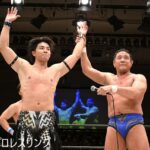 竹下は「佐々木さんが自分が最強だと言ってましたけど、1回戦も2回戦も急所攻撃があっての勝ち。僕の急所は上野選手、秋山選手ほどヤワじゃないんで。基本的にはよけたりかわしたりできると思いますけど、一発、二発、殴ったり蹴られたりしたところで,僕は3カウント取られない。準決勝は佐々木大輔を倒して、決勝はどちらが上がってきても、真っ向勝負で優勝して、(8・21)川崎のメインに立ちたいと思います」とキッパリ。