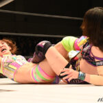 キッド「やられて、向こうの葉月とコグマのアシスト力っていうか、羽南に獲らせてあげたいんだっていうのが伝わってきたけど、今回の防衛戦は私と羽南がキッカケとなって生まれた防衛戦だったから自分が獲りたいっていう気持ちが強くて。今日自分がハイスピード、なつぽいから獲ったぶりにスター・スープレックス・ホールドで3カウント獲ったんだよ。前回はその技でベルトを奪取したけど、今回はその技でこのベルトを守った。この技をもっと、出せるようにそこまでの組み立て、もっと格上の人間にも3獲れるように磨いていかなきゃなーって。けど、今日マジで2人のカットとかアシストが無きゃちょっとこのベルト落としてたところだったかもしれない」